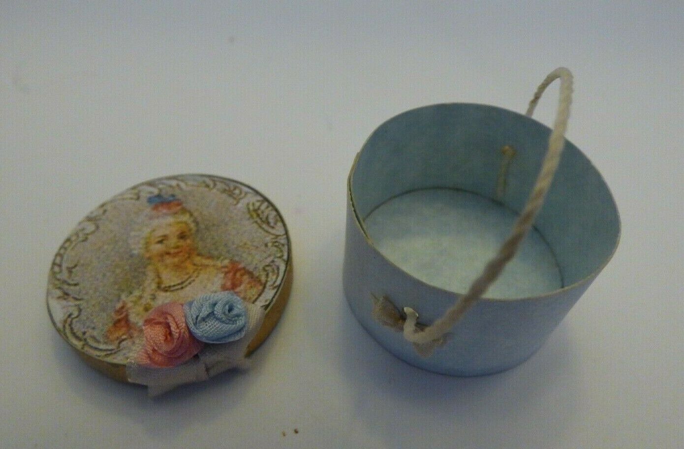 Dollhouse Miniature Blue Hatbox with Pink and Blue Flowers Handcrafted
