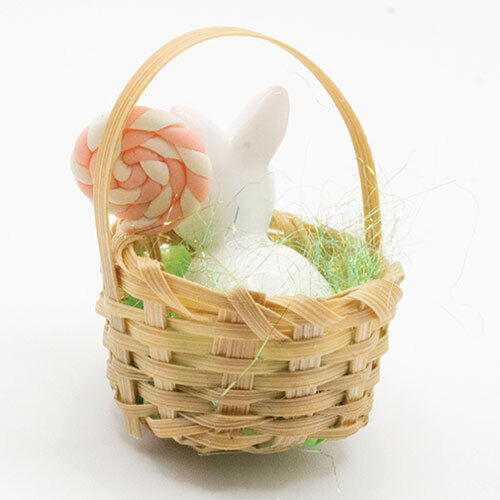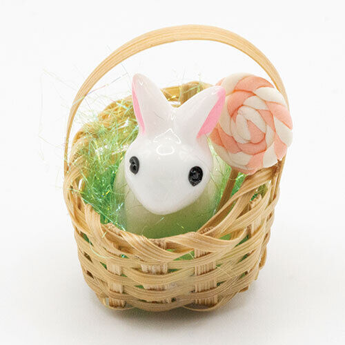 Dollhouse Miniature Bunny in Basket with Lollipop
