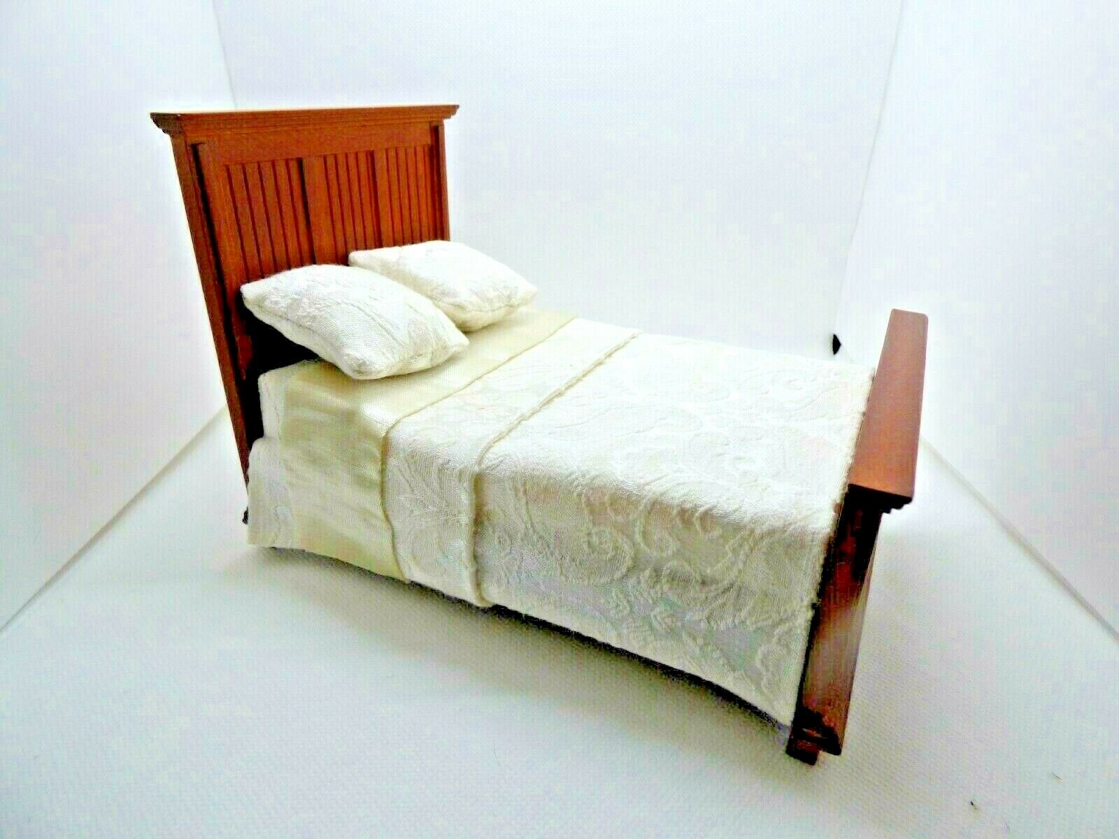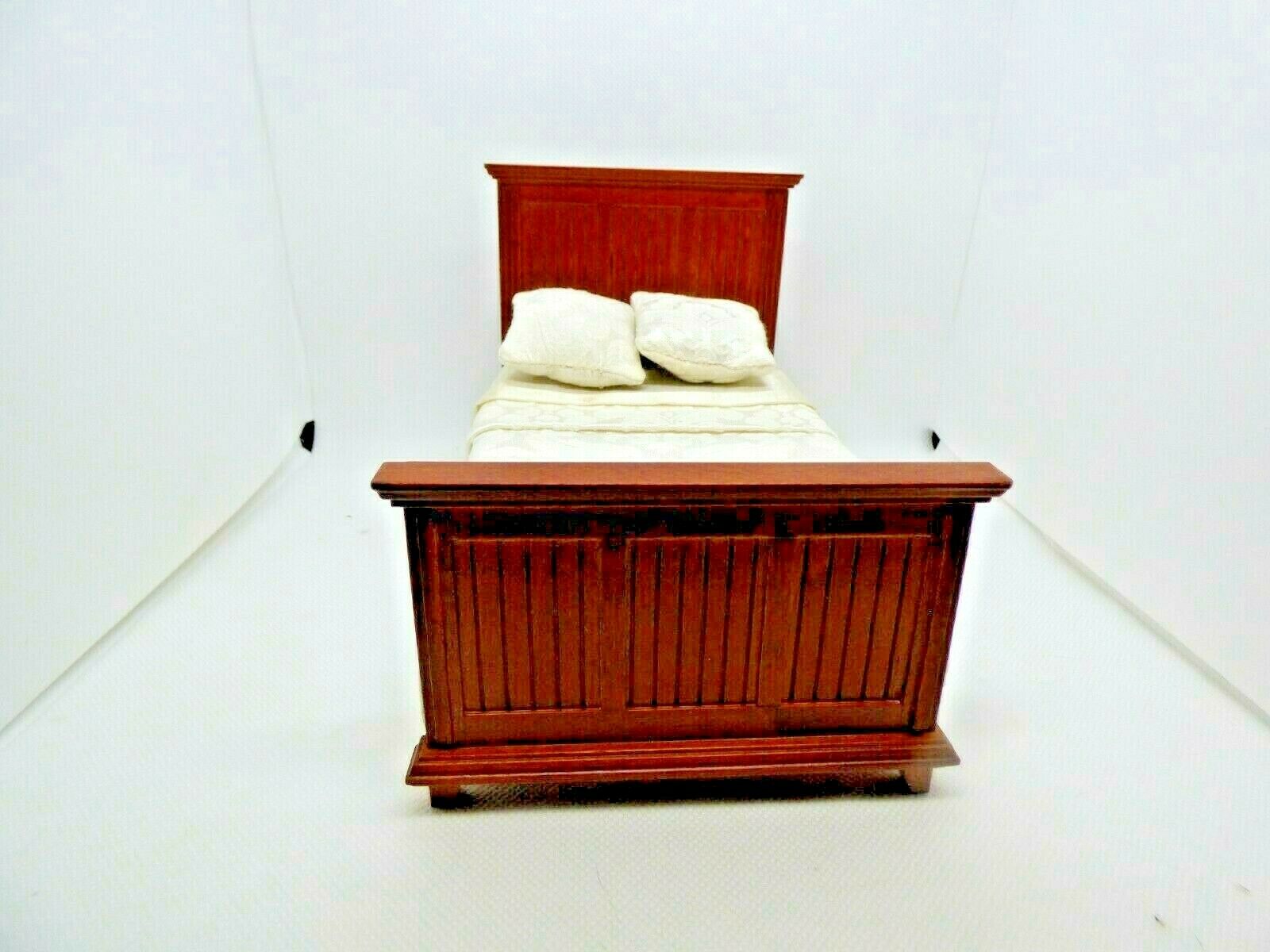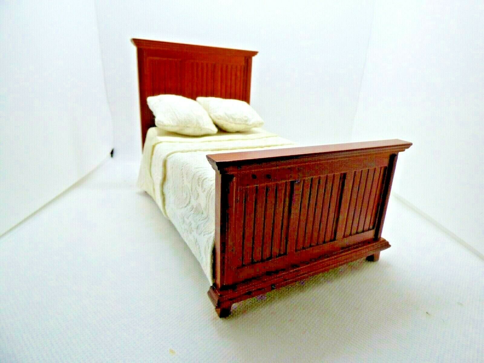 Dollhouse Miniature Country Paneled Bed in Walnut by JBM