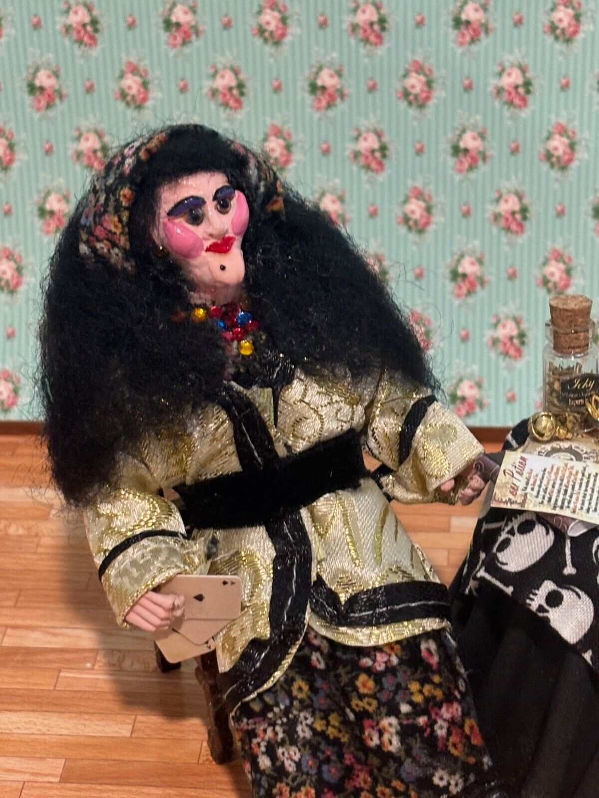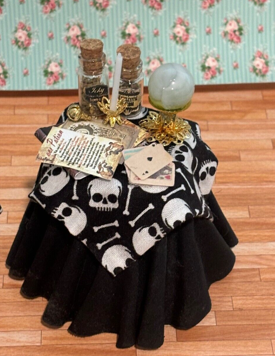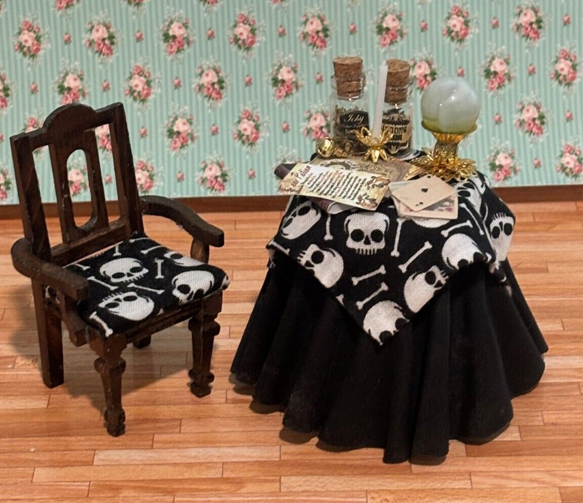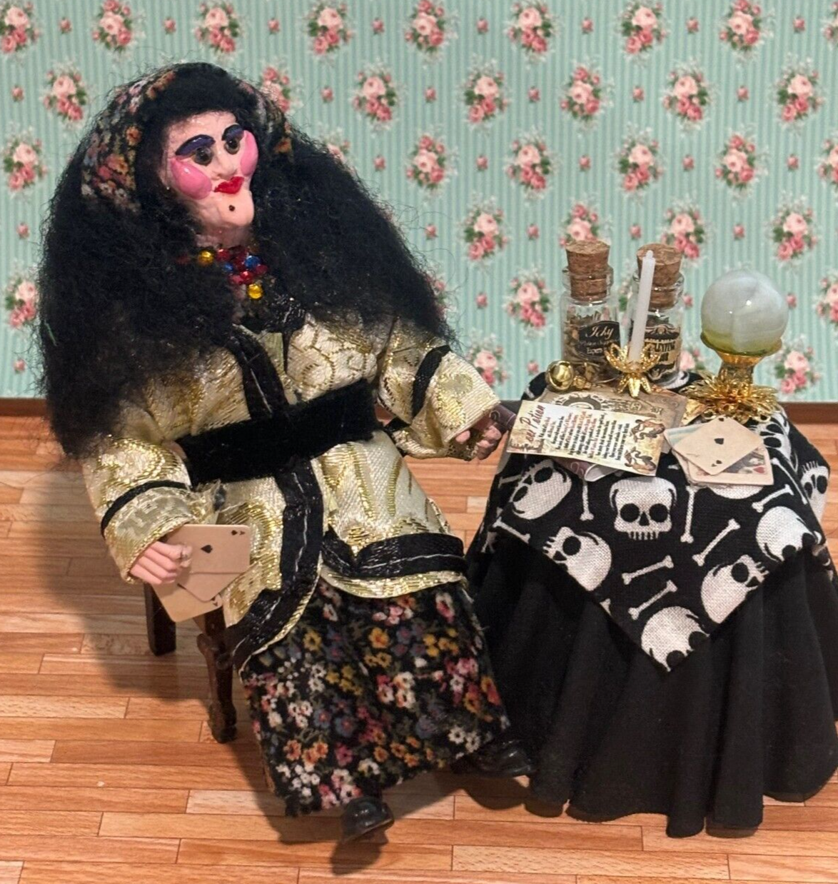 Dollhouse Miniature Halloween Fortune Teller Doll, Table, Chair Handcrafted