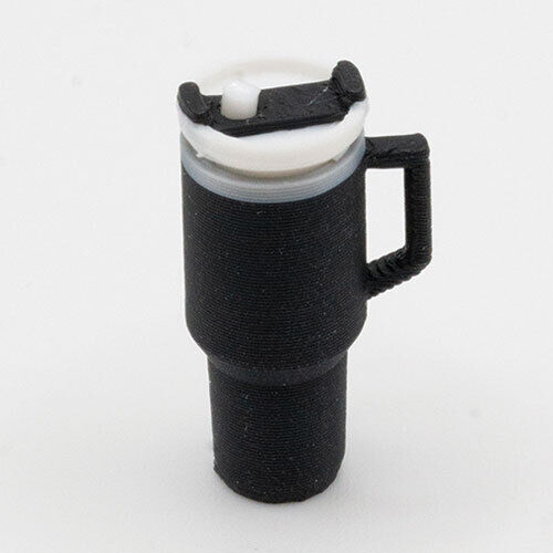 Dollhouse Miniature Tumbler with Removable Lid and Straw, Black