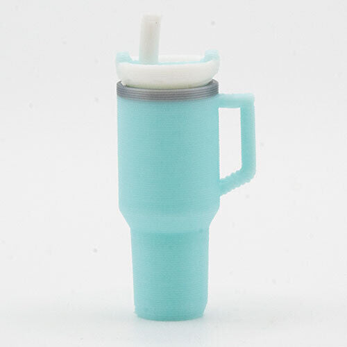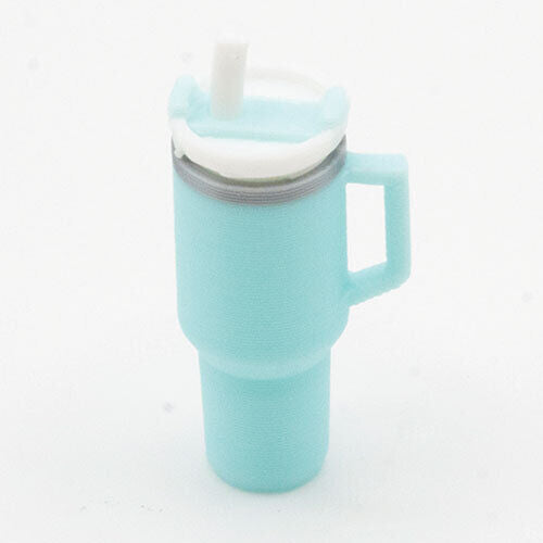 Dollhouse Miniature Tumbler with Removable Lid and Straw, Light Blue