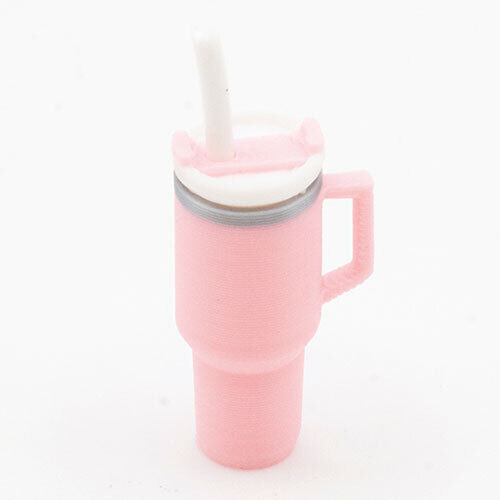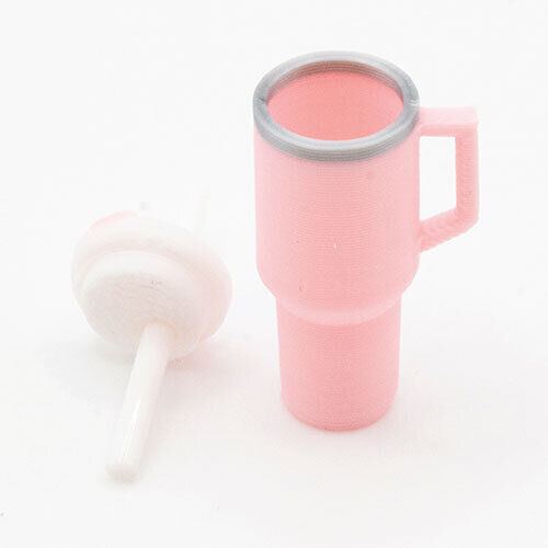 Dollhouse Miniature Tumbler with Removable Lid and Straw, Pink