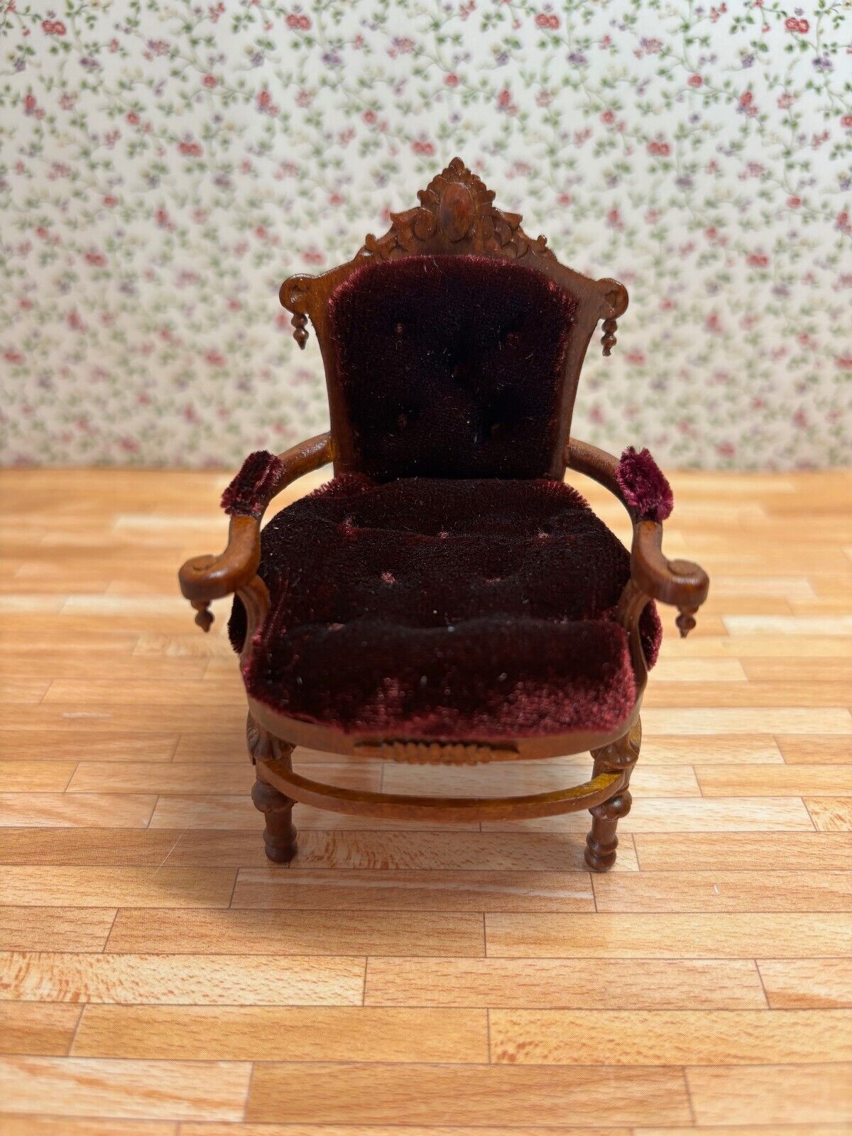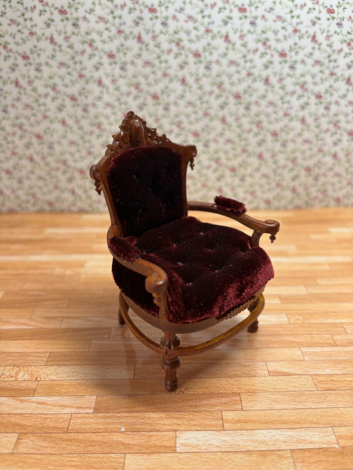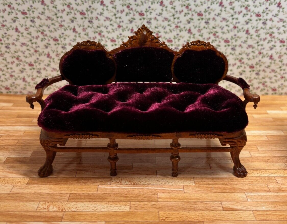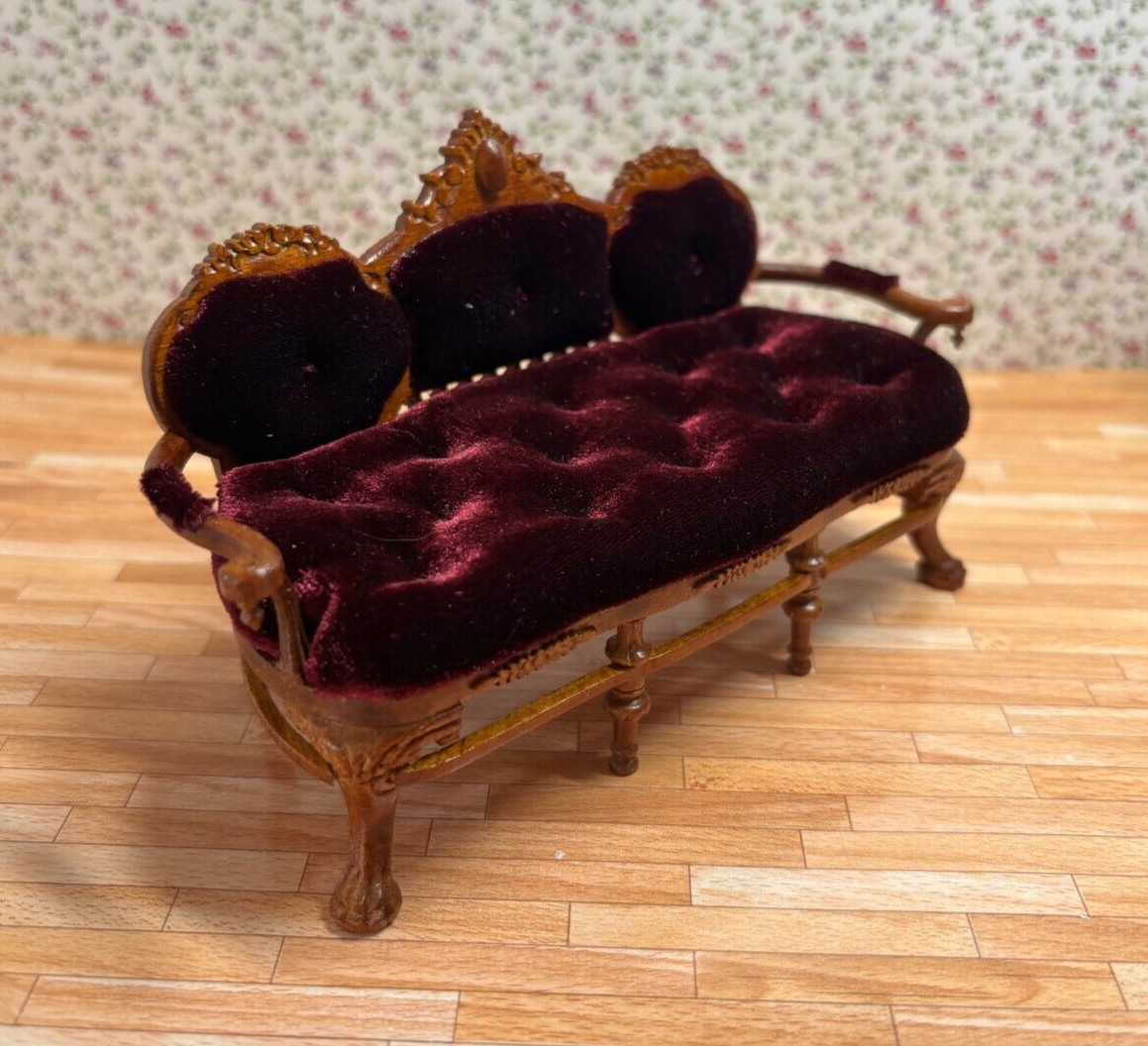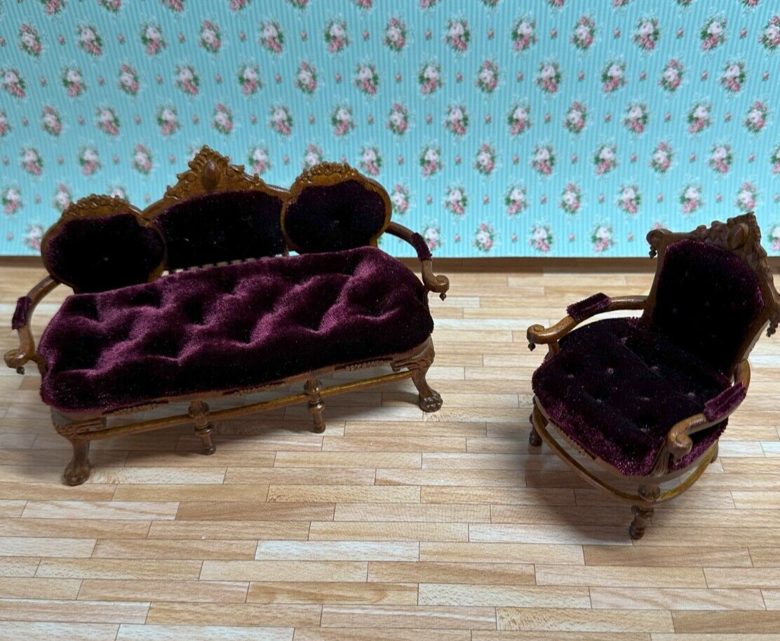 Dollhouse Miniature Walnut Sofa and Chair with Red Velvet Upholstery by Hansson