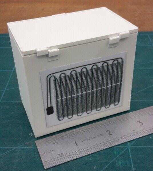1/12th Scale Collectable Dollshouse Miniature of a Chest Freezer circa 1970's - Present Day. Complete with Freezer Basket in the top inside! With detail hinges, grille on the side and coils on the backDimensions 3" wide x 2-3/4" High x 2" from back to front.Handcrafted by Delph Miniatures in UKItem #DA401:12 scalePlease email with any questions.If you are buying more than one item, request a total from me and I will combine shipping.See my store Gigi's Minis for a large variety of dollhouse kits and everything you need to decorate your dollhouse!