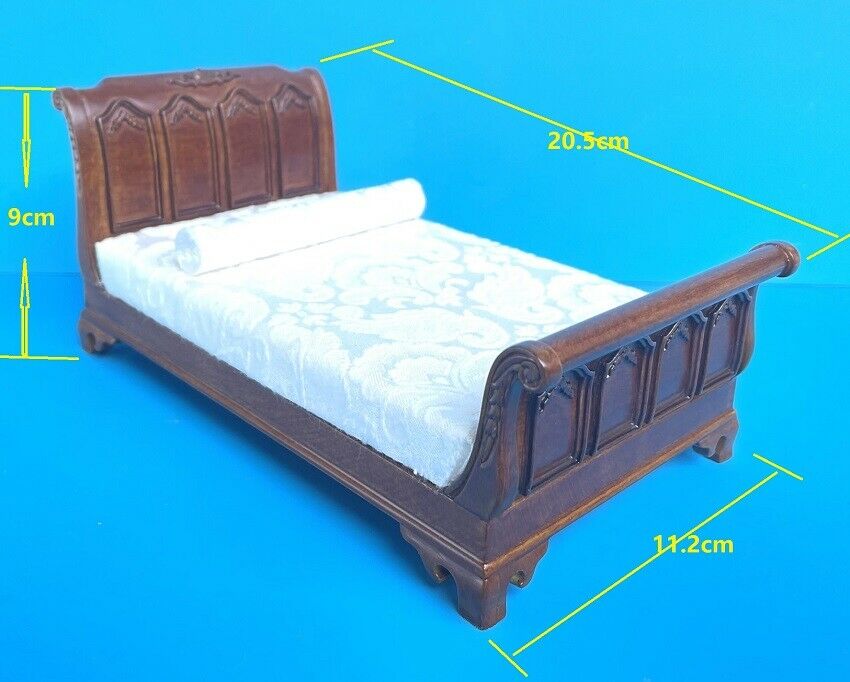 NEW by JBM Dollhouse Miniature Walnut Empire Sleigh Bed