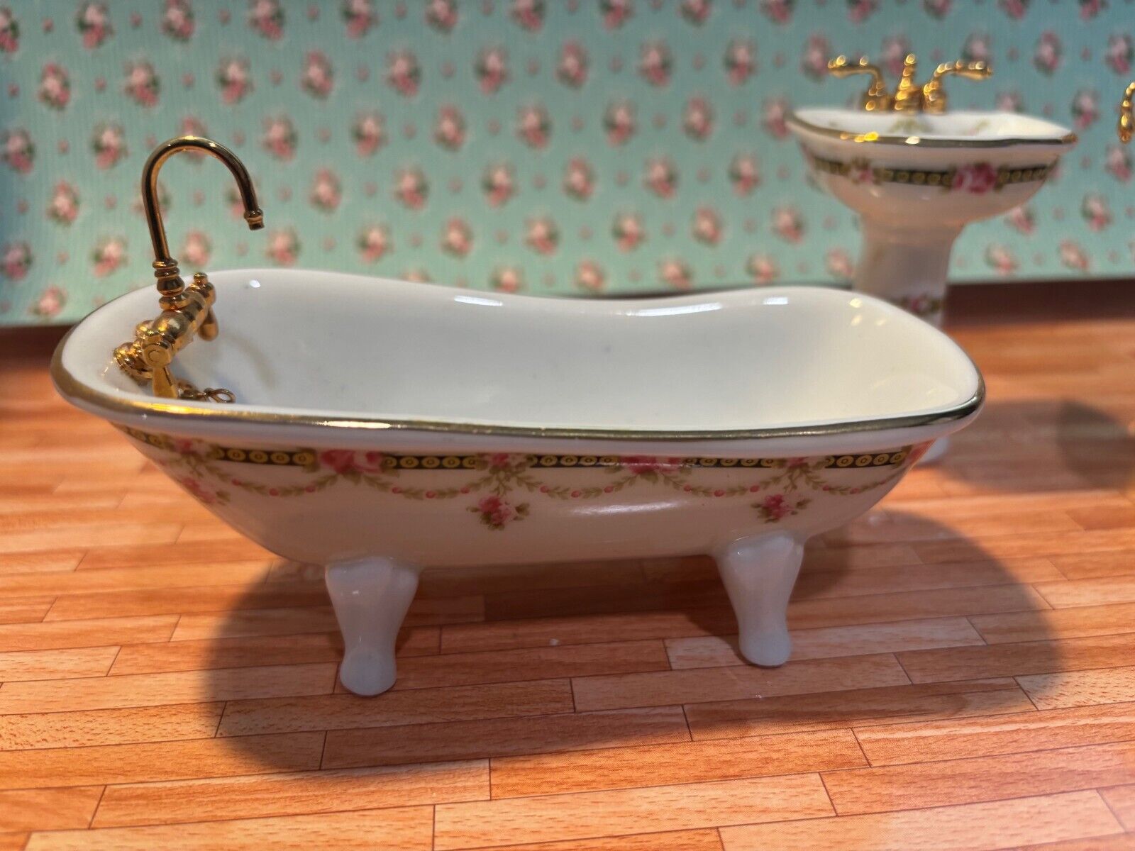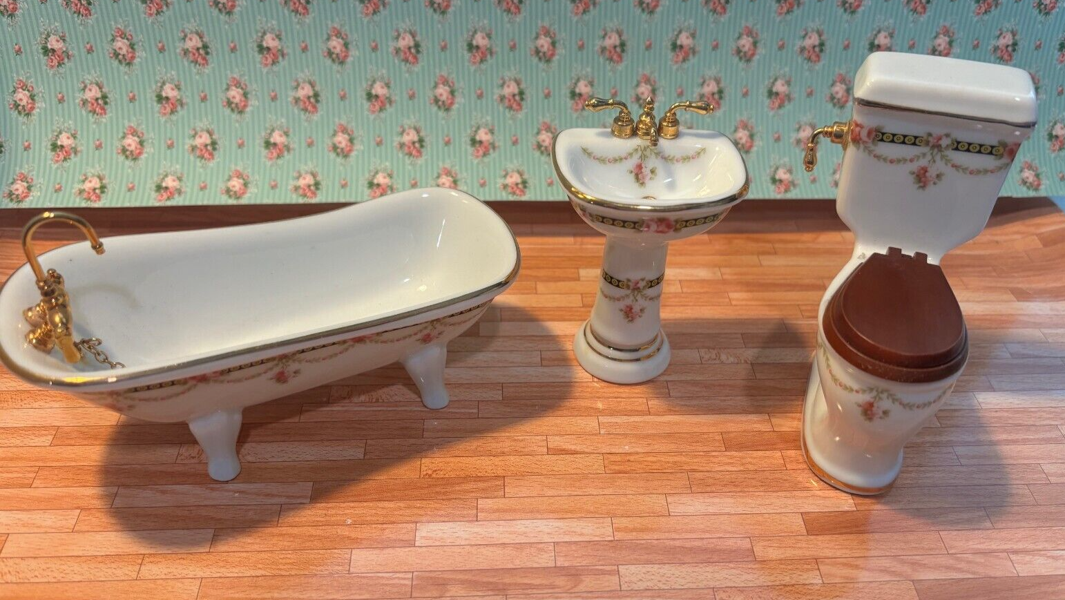 Reutter Porcelain - Dollhouse Miniature Victorian Rose 3-Piece Bathroom Set