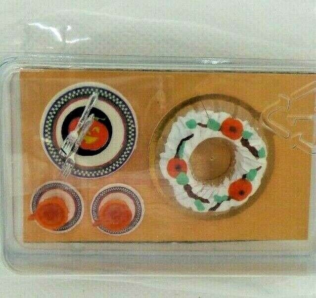 Round cake and 2 cups of coffee - dollhouse miniature handcrafted